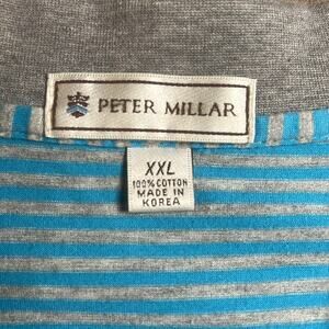 Peter Millar Blue & Grey Striped Polo 100% Cotton Summer Casual Men's Size XXL
