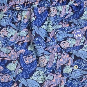 Peter Millar Turtle Print Lined Seaside Swim Trunks Blue Shorts Men’s XXL