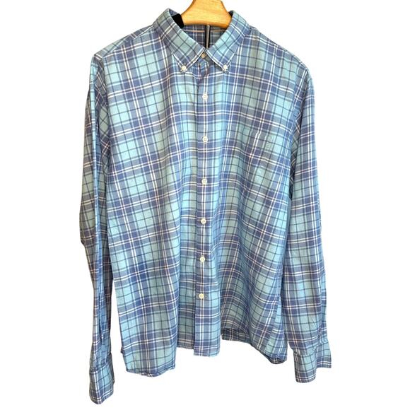 Peter Millar Blue Plaid Button Down Long Sleeve Shirt Size XL Casual Career