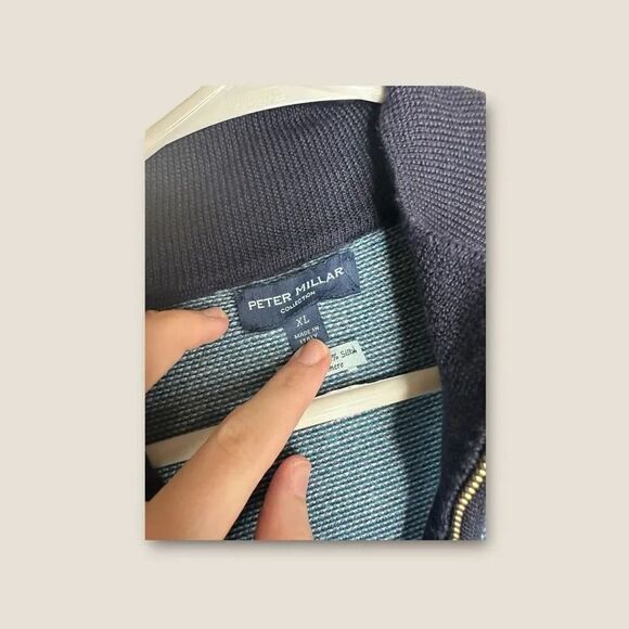 Peter Millar Blue White Merino Wool Quarter Zip Sweater Mens Size XL