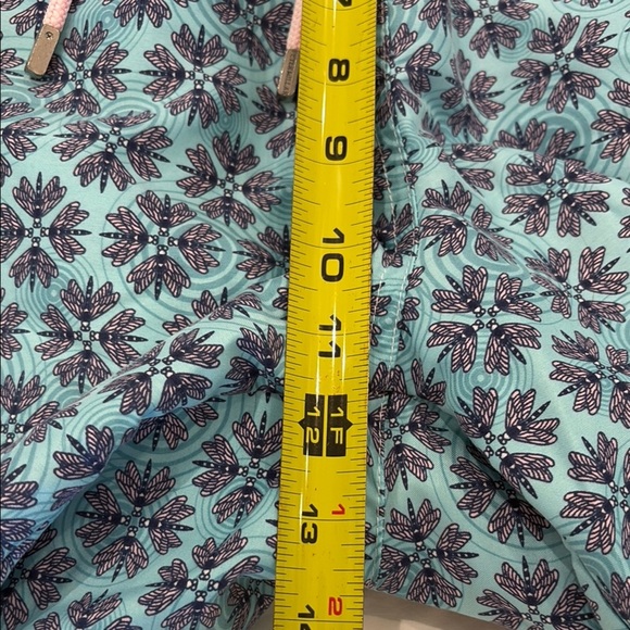 Peter Millar's swim trunks, featuring a sleek design in blue and black. Ideal for both poolside lounging and active swimming, these trunks offer a modern fit and quick-drying fabric.