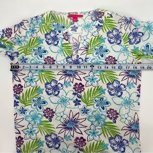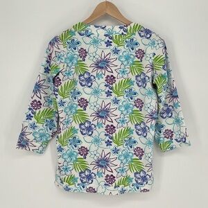 Vibrant floral tunic with blue and green hues. Perfect for casual wear. Excellent condition. No noted signs of wear.