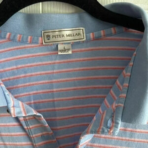 Peter Millar Blue and Pink Striped Polo Shirt size L