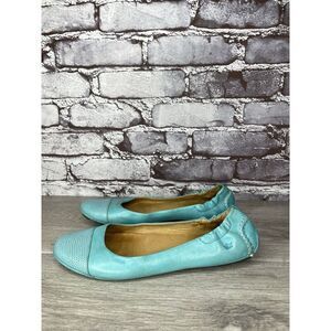 Selling Peter Millar Blue Leather Snake Cap Toe Ballet Flats Shoes Women Sz 6.5M US/37EU