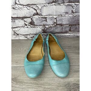 Peter Millar Blue Leather Snake Cap Toe Ballet Flats Shoes Women Sz 6.5M US/37EU