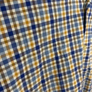 Peter Millar Brown White Blue Check Cotton Long Sleeve Shirt Small. GUC