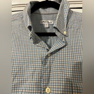 Peter Millar Button Down Shirt Long Sleeve Plaid Lightweight Cotton Mens Large L