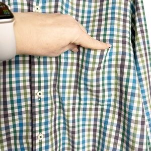 Peter Millar Button Down Shirt Men’s Large Green Blue Plaid Casual Long Sleeve