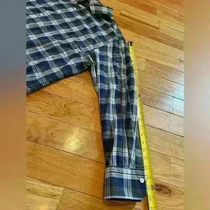 Peter Millar men’s blue/white/gray plaid long sleeved collared button down shirt, size XXL. 100% Cotton. No rips, holes, stains or odors. Please see photos for item details/dimensions. Some photos may appear different in color due to lighting. Ships from smoke-free home.