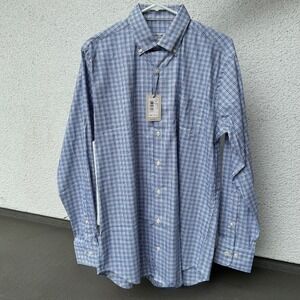 Keywords: Peter Millar, button down shirt, plaid shirt, long sleeve shirt, casual shirt, men's shirt, size M, blue plaid, soft shirt, dress shirt, button-down, menswear, classic fit, new with tags