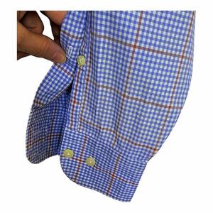 Peter Millar Button Down in Blue, Orange & White Plaid Size XL