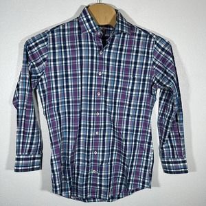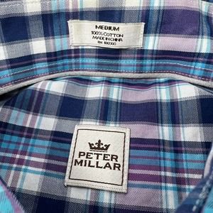 Peter Millar Button Shirt Mens Medium Button Down Long Sleeve Plaid Purple Blue