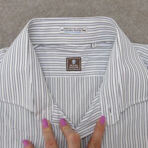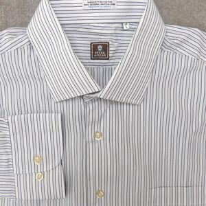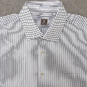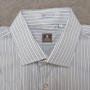 Peter Millar Button Up Shirt Mens Large (17) Gray Striped Cotton Long Sleeve