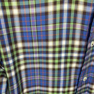 Peter Millar Button-Down Shirt Multicolor Plaid Long-Sleeve Men's M, 100% cotton. Colors: brown, blue, purple, green.