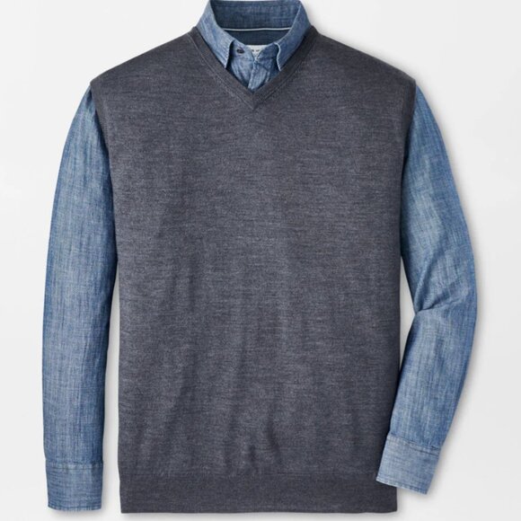 Peter Millar Charcoal Gray Autumn Crest V-Neck Sweater Vest ME0S00 NWOT M