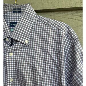 Peter Millar Collection Men’s Plaid Flex Finish Shirt Medium Brown White