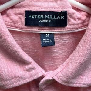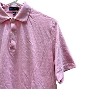 Peter Millar Collection Short Sleeve Polo. Dusty Pink with White Stripes. 75% Cotton, 25% Linen. Men's Size Medium.