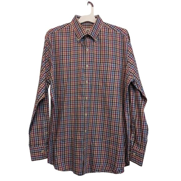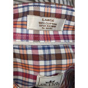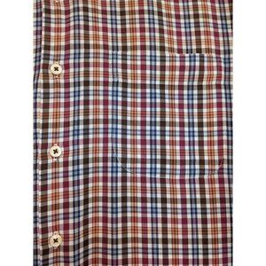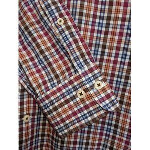 Peter Millar Cotton Long Sleeve Button Down Plaid Mens Shirt Red Brown Orange Large