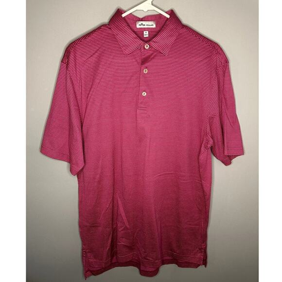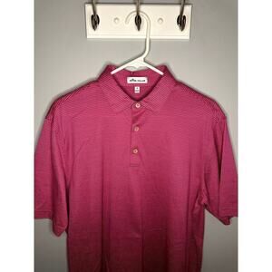 Peter Millar Cotton Stripe Short Sleeve Chest Pocket Polo Shirt Pink Mens Medium
