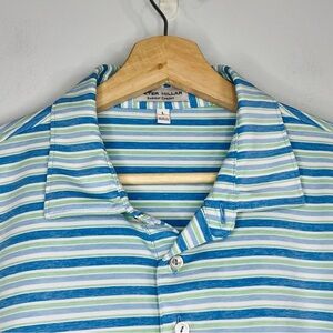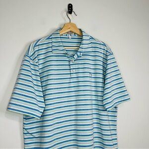 Peter Millar Crown Blue Striped Summer Comfort Polo L