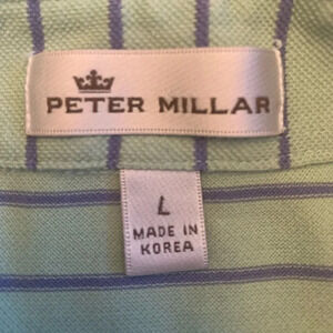 Peter Millar Crown Button Down Short Sleeve Shirt Striped Green Polo Size L