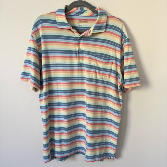Peter Millar Crown Cannon Beach Striped Golf Polo Shirt Men's Size Medium