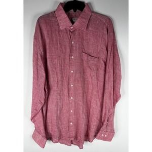 Peter Millar Crown Cool Men’s 100% Linen Red Long Sleeve Button Down XXL