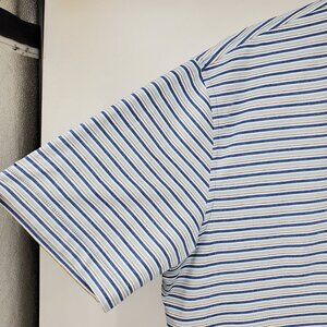 Peter Millar Crown Crafted Blue Striped Performance Men's Golf Polo Shirt Large