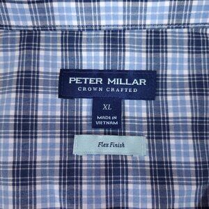 Peter Millar Crown Crafted Mens Size XL Flex Finish McAlister Performance Poplin Sport Shirt Plaid Blue White