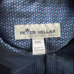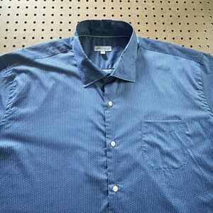 Peter Millar Crown Crafted SS Button Up Shirt Geometric Blue XXL Men EUC