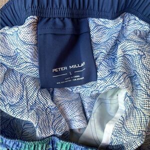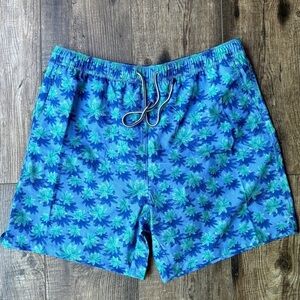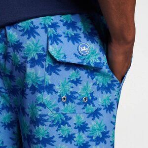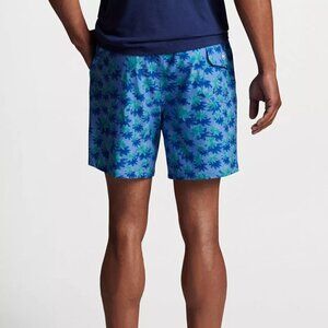 Peter Millar Crown Seaside Aerial Palms Swim Trunk Board Shorts Maritime Men's L
