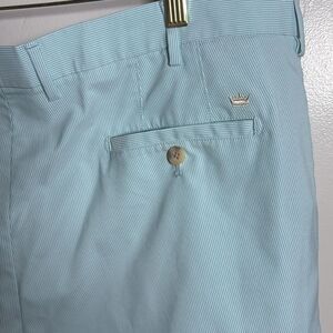 Peter Millar Crown Sport Shorts Teal Blue White Stripes Size 40 Golf Outdoor