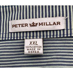 Peter Millar Crown Sport Striped Polo Shirt XXL Green Blue Cotton Short Sleeve