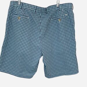 Peter Millar CrownSport Men’s seersucker navy aqua and white plaid short Size 40