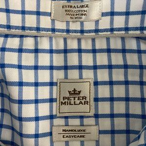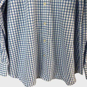 Peter Millar Dress Shirt Mens Large Blue Check Twill Button Down Long Sleeve