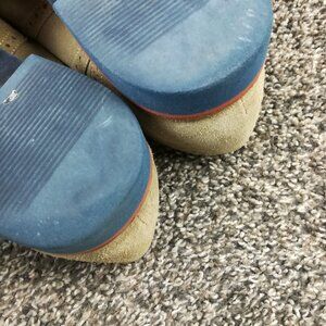 Clean gently used condition. A tiny bit of discoloration at toes, price written on bottom. A tiny bit of heel drag.