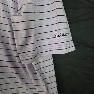 The shirt is made from a blended fabric that includes polyester and spandex, making it both lightweight and stretchy. It also features moisture-wicking and quick-dry capabilities, making it ideal for golf or any other sports-related activity. The shirt is multicolored and has a striped pattern, adding a touch of style to the overall design.