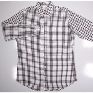 Peter Millar Easy Care Nano Luxe White Brown Check Dress Button Up Shirt Medium