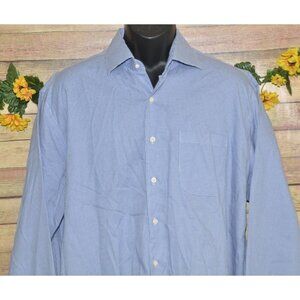 Peter Millar Easycare Mens Blue Checked Long Sleeve Button Down Shirt 17.5 Xlong