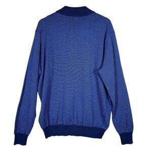 $245 Peter Millar Extrafine Italian Merino Wool Needle Stretch Quarter-Zip Covered Placket Sweater in Navy, Size Large