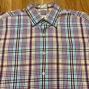 Peter Millar Golf Plaid Button Down Shirt Long Sleeve All Cotton Men Size Large