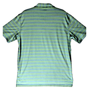 Elevate your golf game with this Peter Millar Summer Comfort polo in blue. Designed with performance in mind, this polo features UV protection, short sleeves, stretch, summer comfort, all seasons, moisture-wicking, wrinkle-resistant, and breathable fabric. The collared neckline with a point collar style and striped pattern adds a touch of sophistication, making it suitable for travel, activewear, casual, and business occasions. The button closure and Peter Millar logo accents provide a secure fit and stylish look. This polo is made of a blend of polyester and spandex, making it comfortable and machine washable.