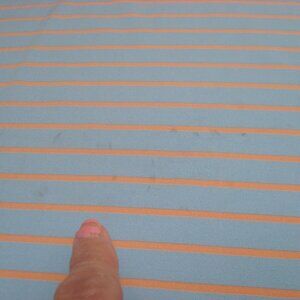 There is faint discoloring on the crease of the collar, and some faint stains on the stomach area (see pictures)