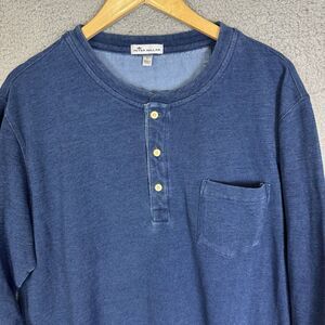 Peter Millar Henley Shirt Mens Large Blue Long Sleeve Cotton
