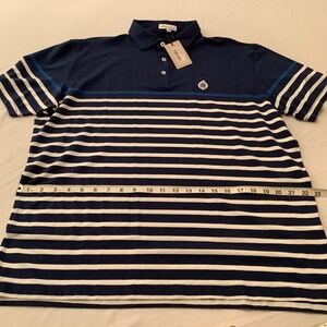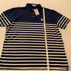 Peter Millar Short Sleeve Knit, Size L, Cotton/Spandex/Tencil/Lyocell, Soft and Stretches, Prestige Club Logo’d, Navy and White