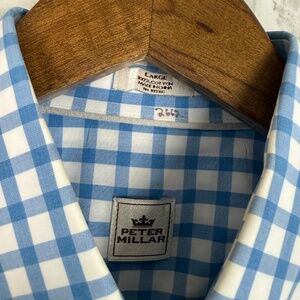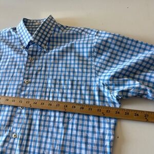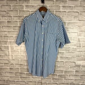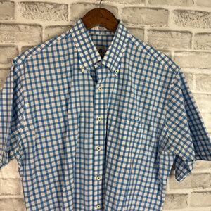 Peter Millar Light Blue Gingham Check Short Sleeve Casual Button Down Shirt LARG