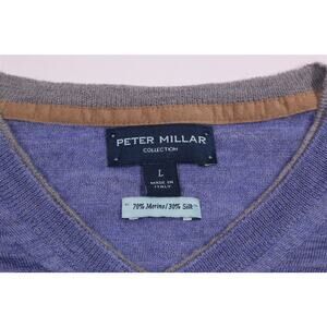 Peter Millar Light Blue Wool Silk V-Neck Knit Sweater Men's Large Italy