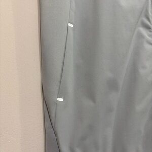 Light gray vest with a sleek design. Ideal for layering. Features a full zip front.