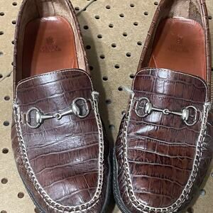 Peter Millar Loafers Mens Mens 10.5 M Mahogany Brown Crocodile Leather Grain Bit