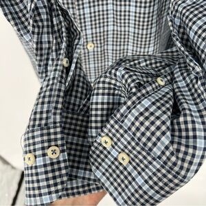 Checkered blue gray shirt. Size XL. Measurements are included in photos.